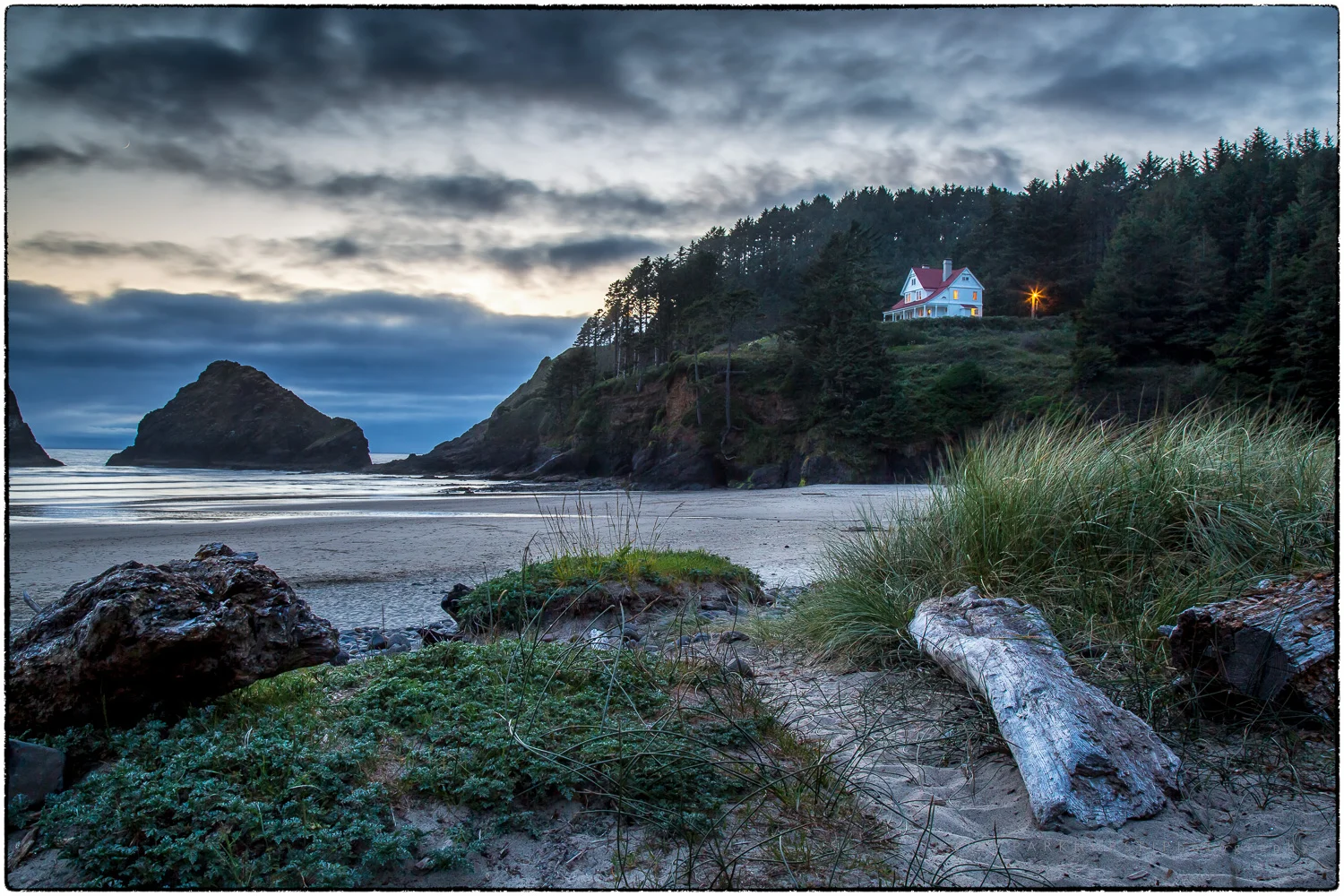 Heceta Head Lighthouse is not only one of the most photographed lighthouses in Oregon, but also the world. Situated approximately 205 feet above the Pacific on a rocky headland, the functioning lighthouse stands tall as one of the most visibly stunning landmarks near Florence. First lit in 1894, the 56-foot-tall lighthouse shined its beam up to 21 nautical miles out to sea as a beacon to incoming vessels.